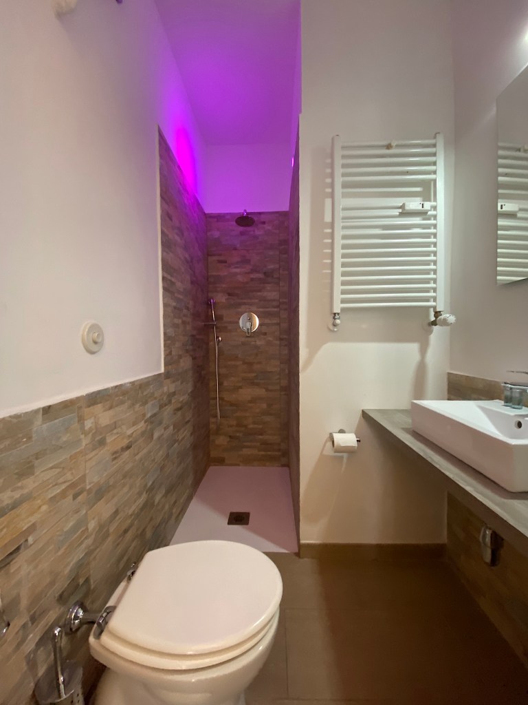 Il bagno privato è completo di tazza/bidet, asciugacapelli e set di cortesia.